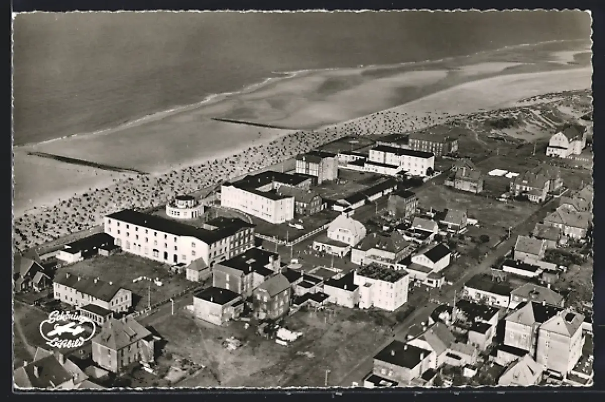 AK Wangerooge, Luftaufnahme Strand und Kurhaus