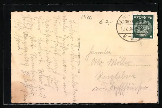 alte Ansichtskarte, gelaufen 1934, Eckknicke re., Stempelspur, guter Zustand