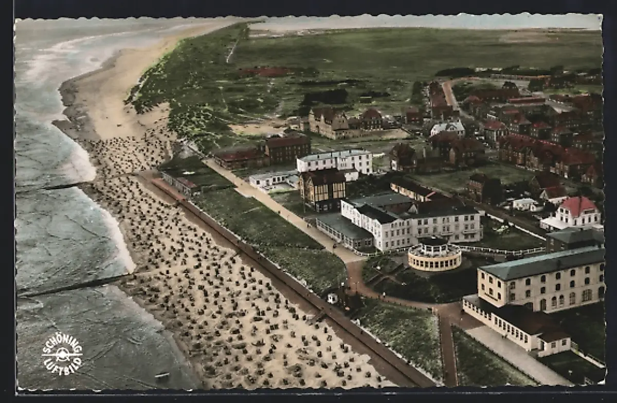 AK Wangerooge, Ortsansicht mit Strand vom Flugzeug aus