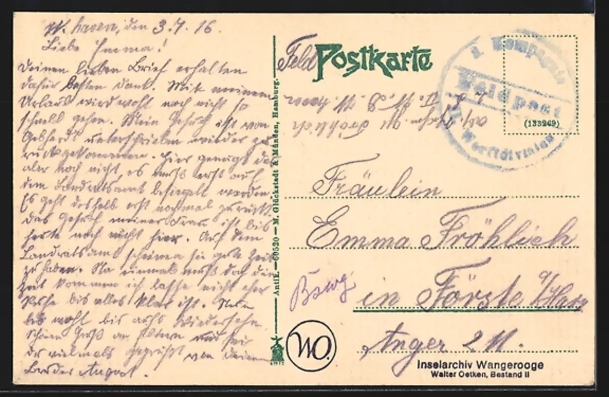 alte Ansichtskarte, gelaufen 1916 als Feldpost, guter Zustand
