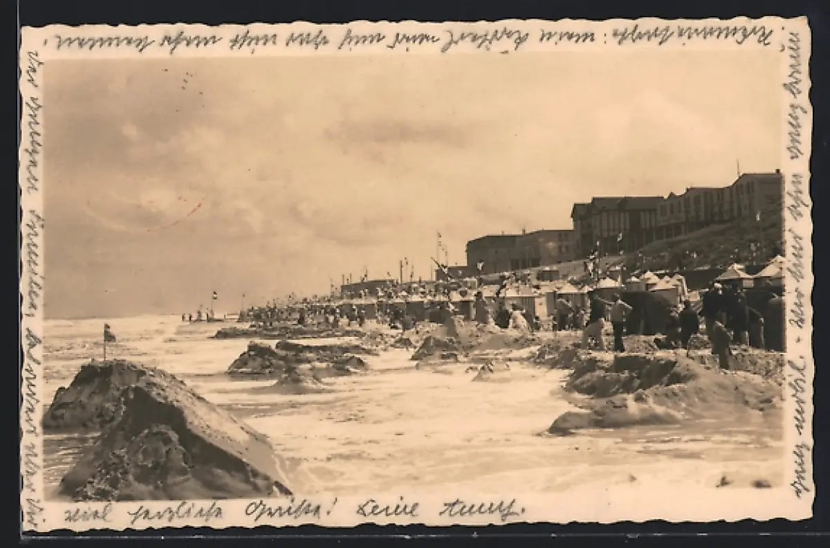 AK Wangerooge, Strand mit Badegästen und Strandkörben