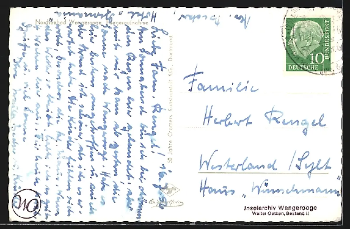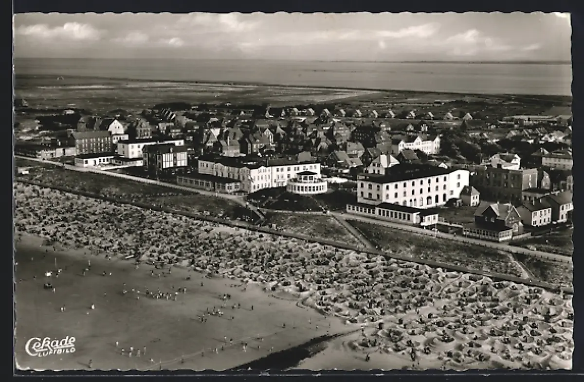 AK Wangerooge, Strand mit Ort vom Flugzeug aus
