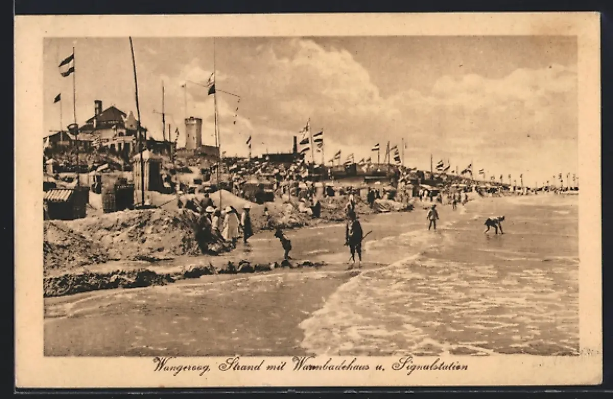 AK Wangerooge, Strand mit Warmbadehaus und Signalstationen