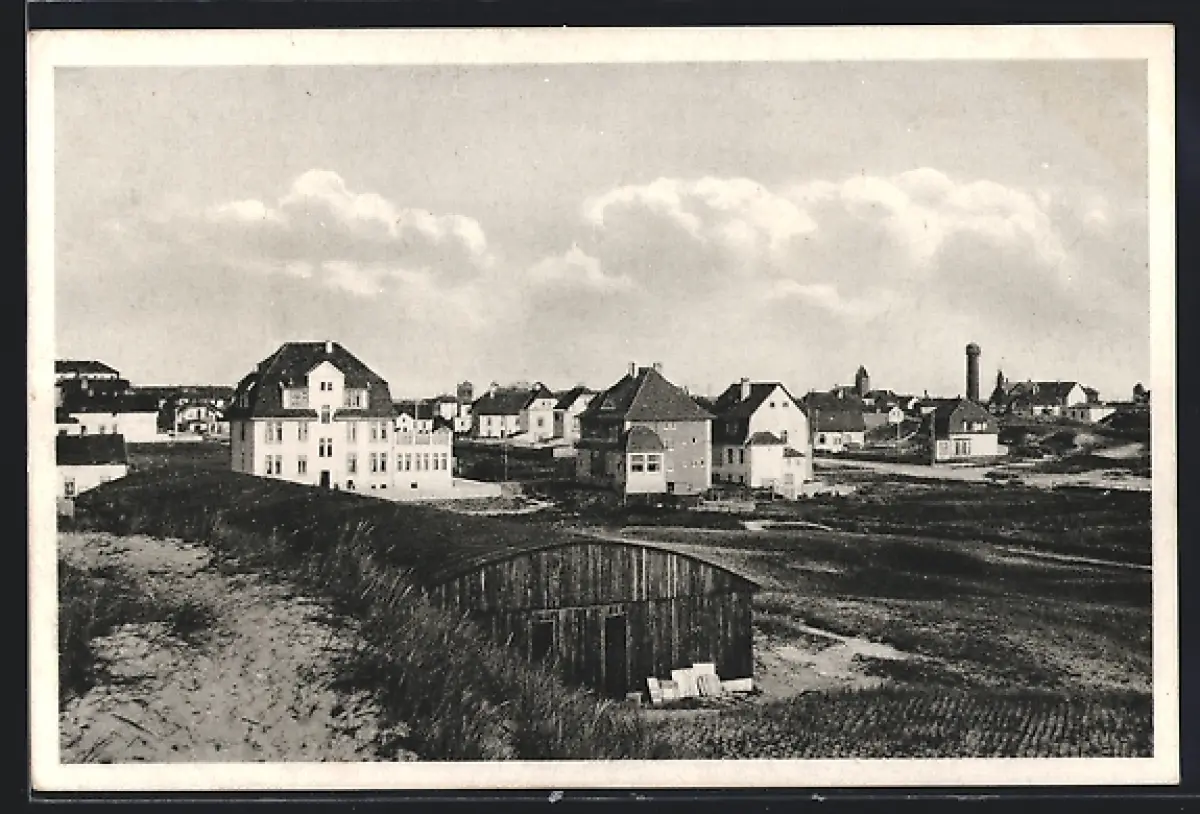 AK Wangerooge, Totalansicht der Ortschaft, Baracke