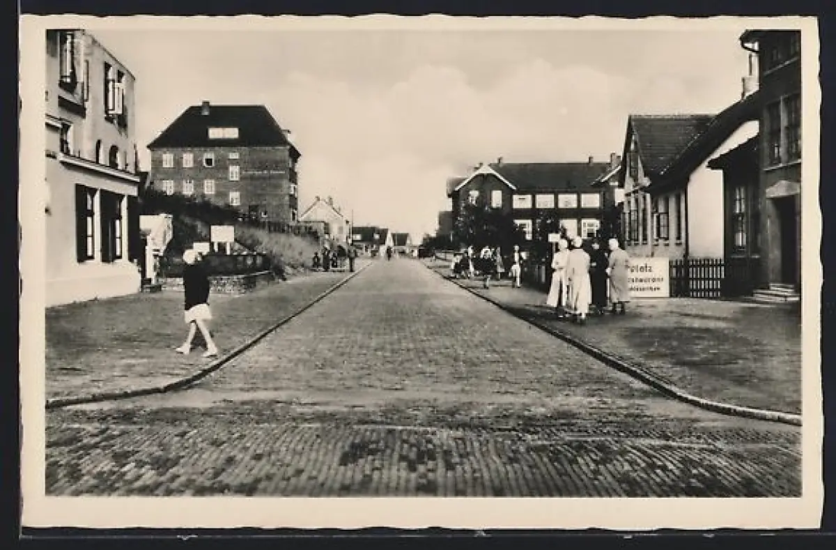 AK Wangerooge, Zedeliusstrasse, Strassenansicht mit Passanten und Gebäuden