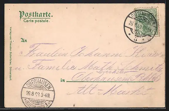 alte Ansichtskarte, gelaufen 1903, Stempelspur, guter Zustand