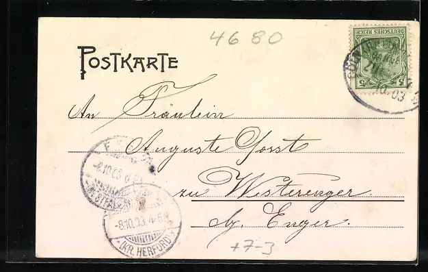 alte Ansichtskarte, gelaufen 1903, guter Zustand