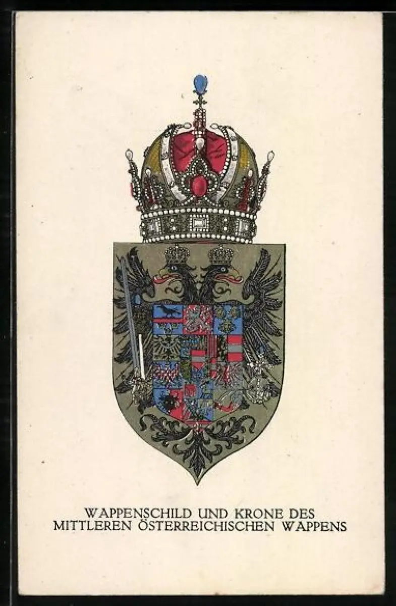 AK Wappenschild und Krone des Mittleren Wappens von Österreich, Rotes Kreuz