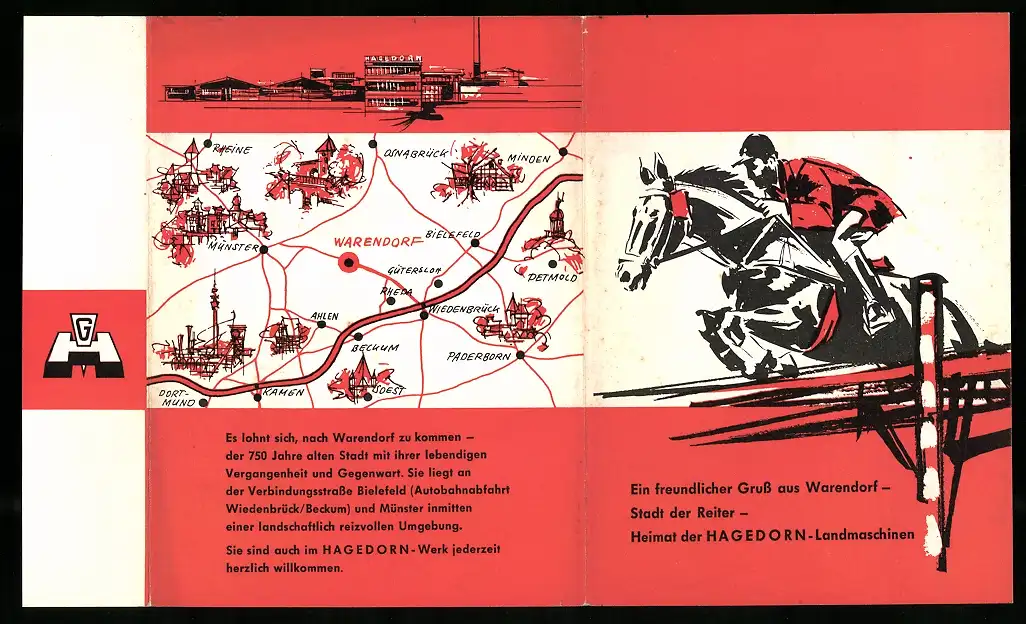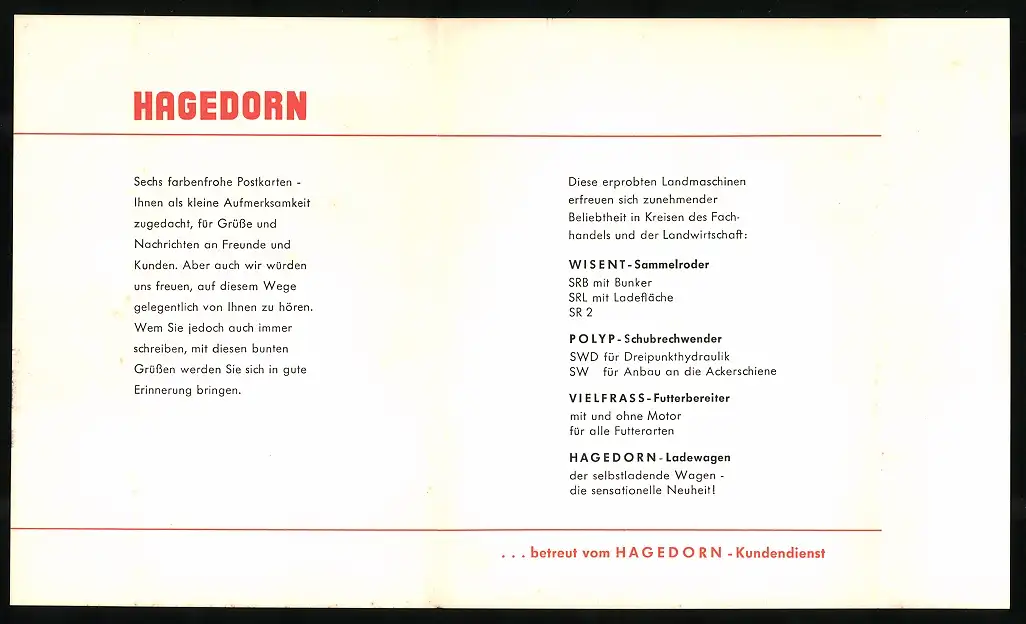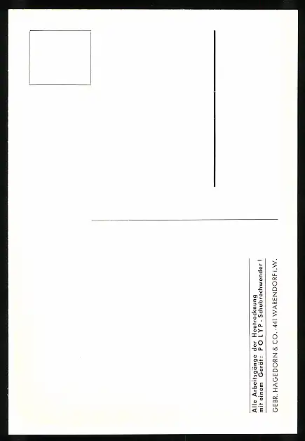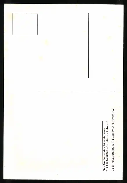 AK Warendorf, Reklame für Hagedorn-Landmaschinen, Serie von 6 AK, Schubrechwender, Kartoffelsammelroder