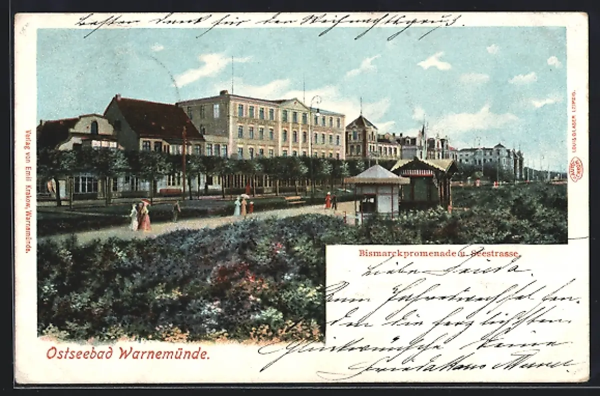 AK Warnemünde, Bismarckpromenade u. Seestrasse