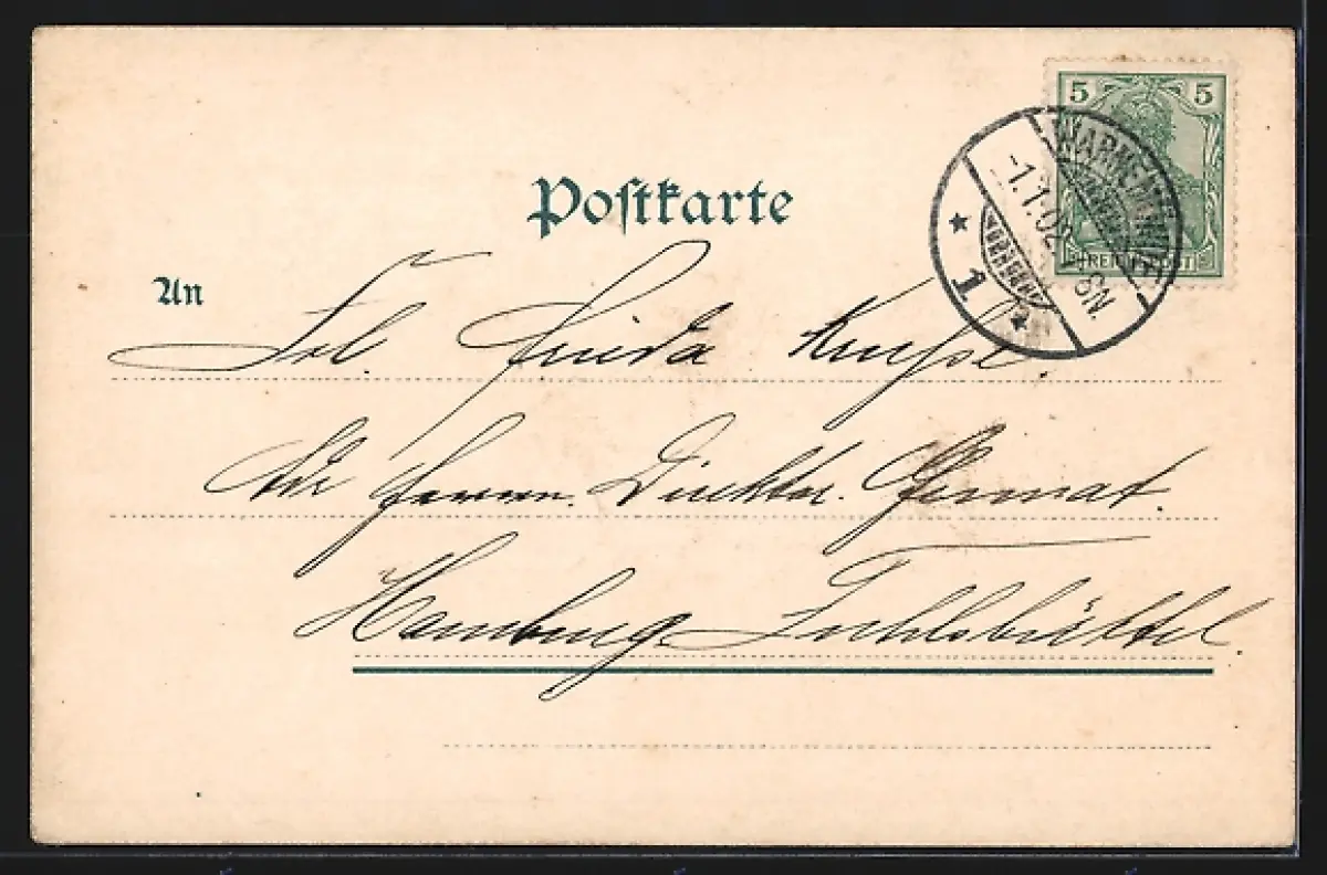 alte Ansichtskarte, gelaufen 1902, guter Zustand