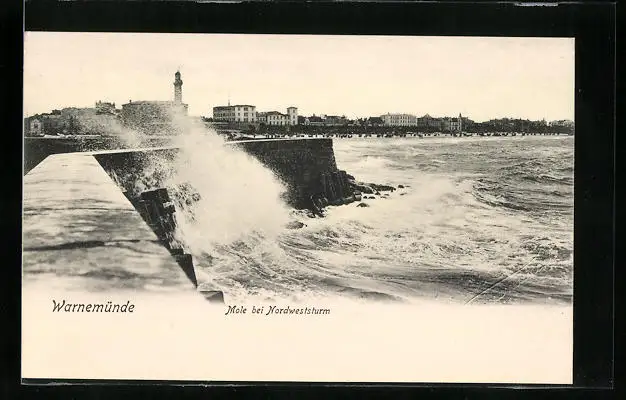 AK Warnemünde, Mole bei Nordweststurm