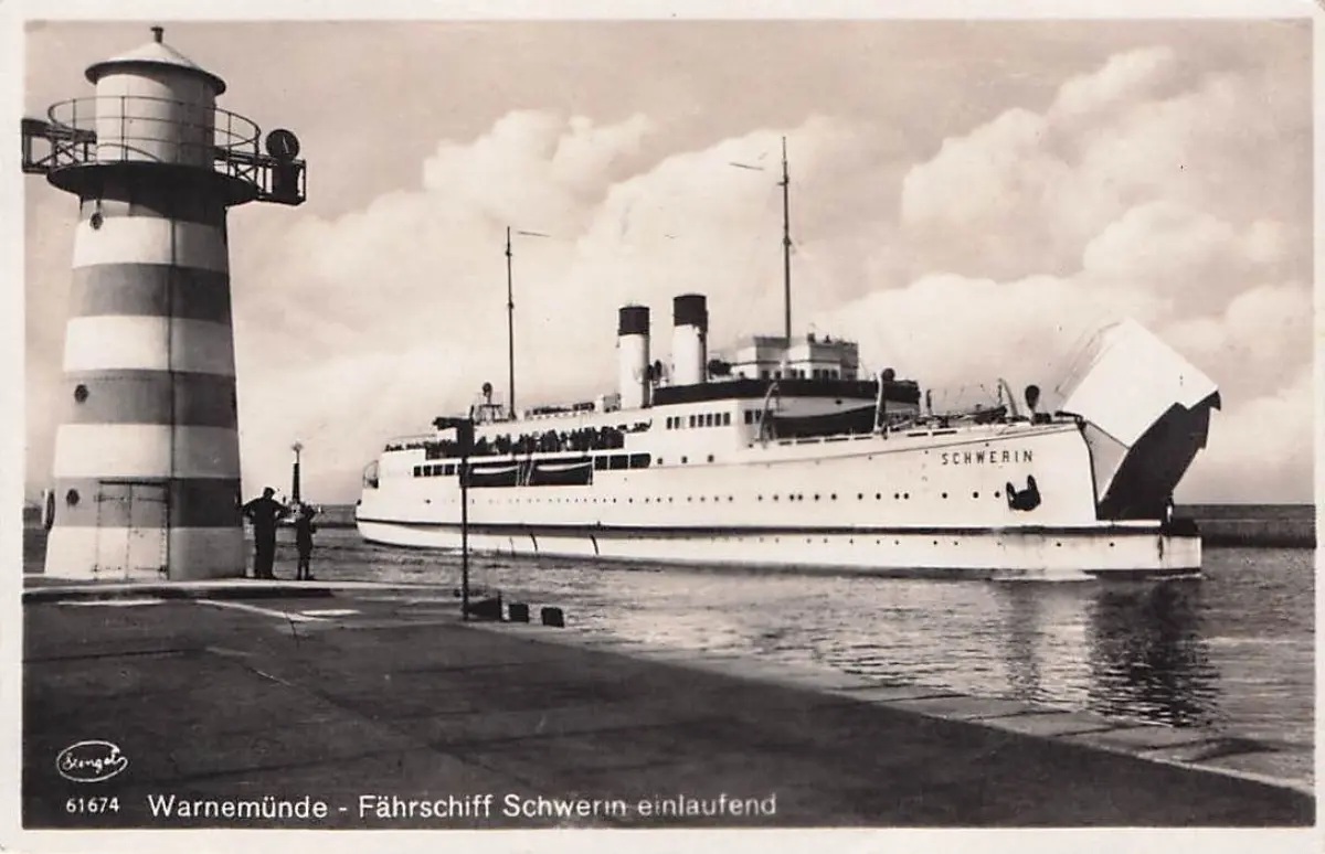 AK Warnemünde, einlaufendes Fährschiff Schwerin -793402