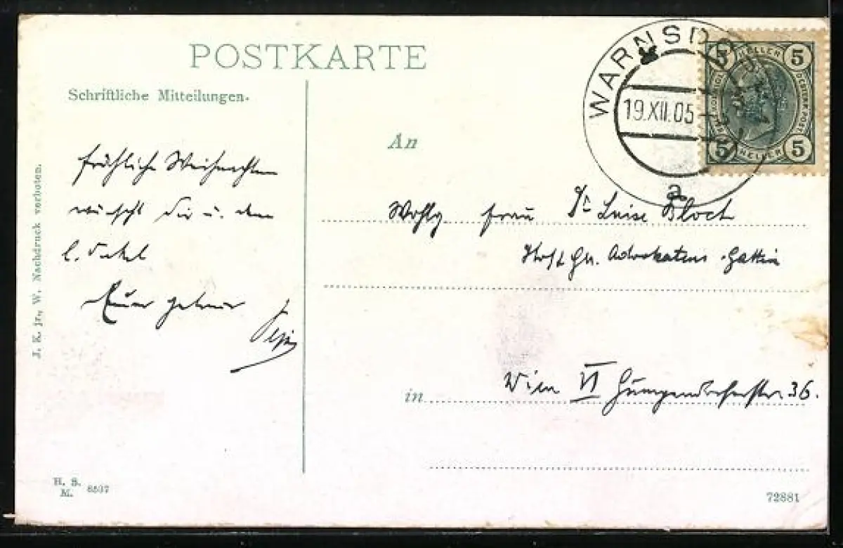 alte Ansichtskarte, gelaufen 1905, Eckknicke li. unten, guter Zustand