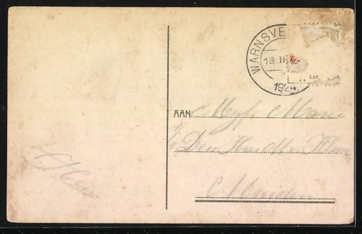 alte Ansichtskarte, gelaufen 1924, Briefmarke entfernt, rückseitig Oberflächenschaden, Eckknick unten li., guter Zustand