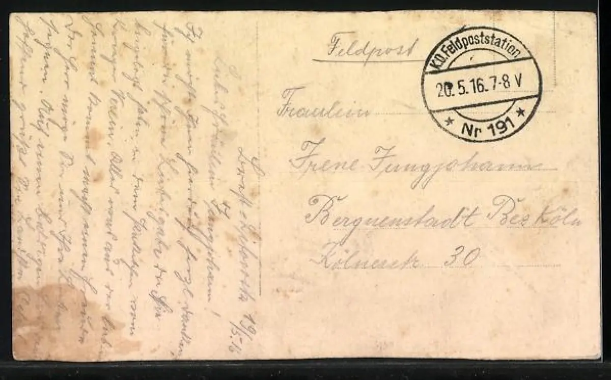 gelaufen 1916, Eckknicke oben, obere u. untere Kante beschnitten, Bugspur li. oben, guter Zustand