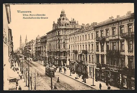 AK Warschau, eine Strassenbahn auf der Marschallkowskastrasse