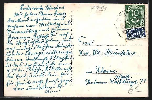 alte Ansichtskarte, gelaufen 1952, Eckknick re. oben, guter Zustand