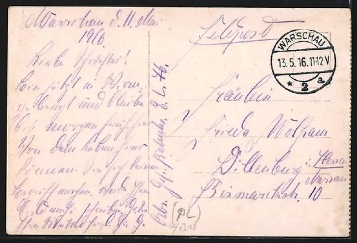 alte Ansichtskarte, gelaufen 1916 als Feldpost, Stempelspur, Eckknicke oben, sonst guter Zustand
