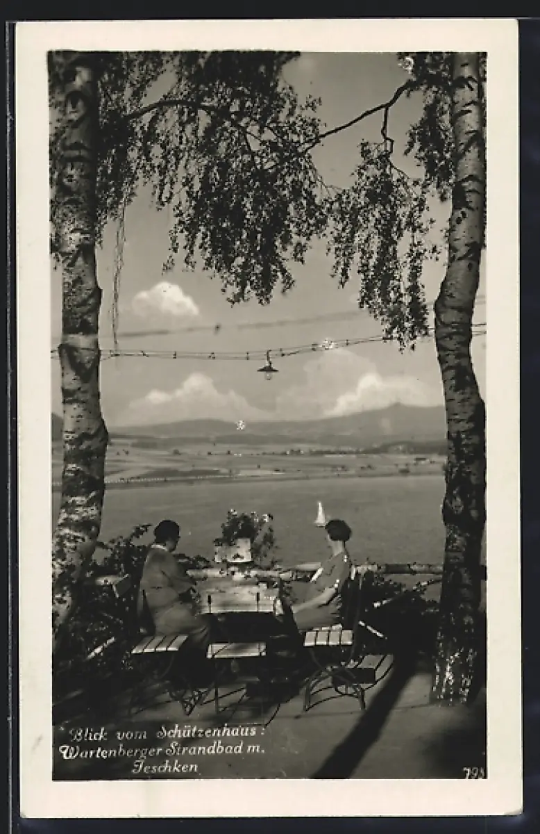 AK Wartenberg, Blick vom Restaurant Schützenhaus, Wartenberger Strandbad mit Jeschken