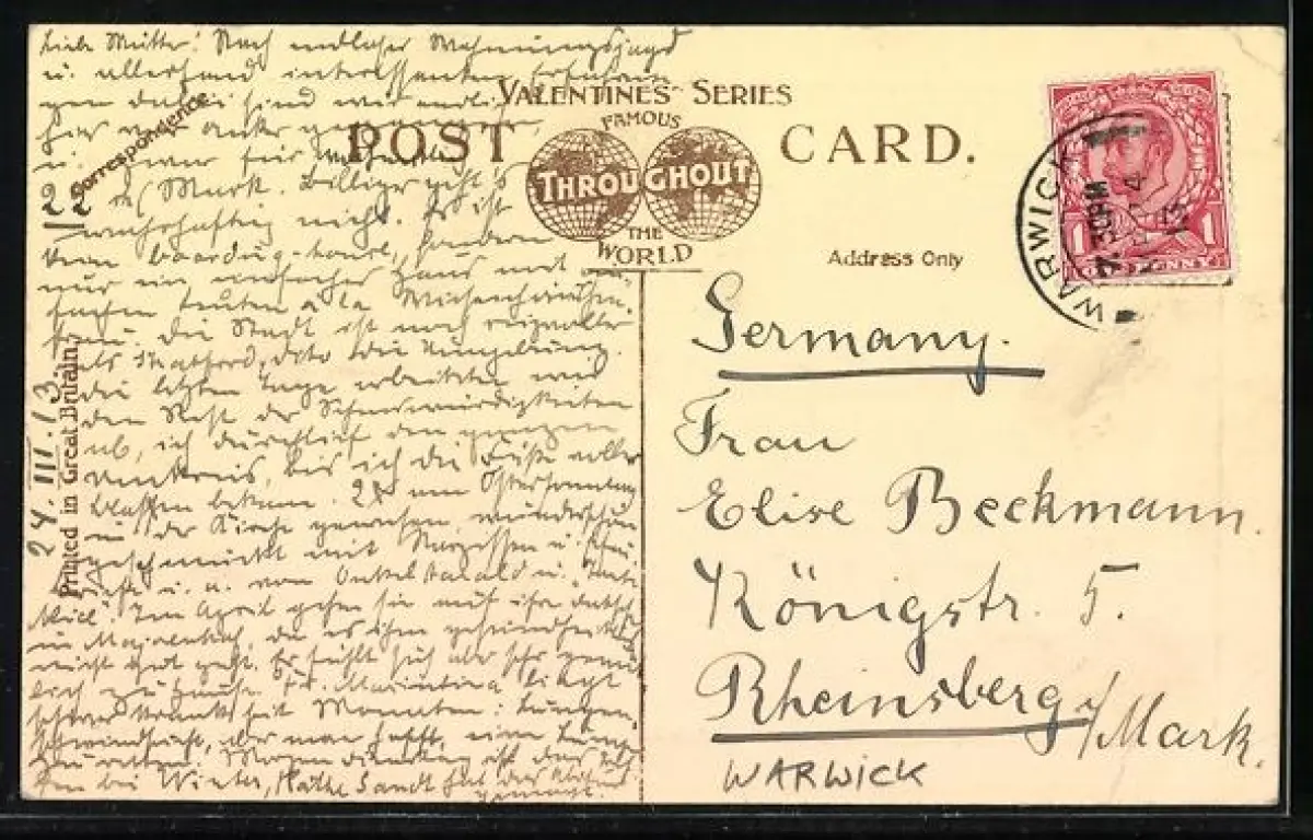 alte Ansichtskarte, gelaufen 1913, Eckknicke li., guter Zustand