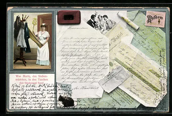 AK Was Marie, das Stubenmädchen, in den Taschen des Studenten fand, Dienstmädchen