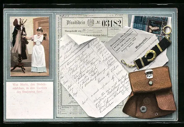 AK Was das Stubenmädchen Marie in den Taschen des Studenten fand, Pfandschein und Mahnzettel