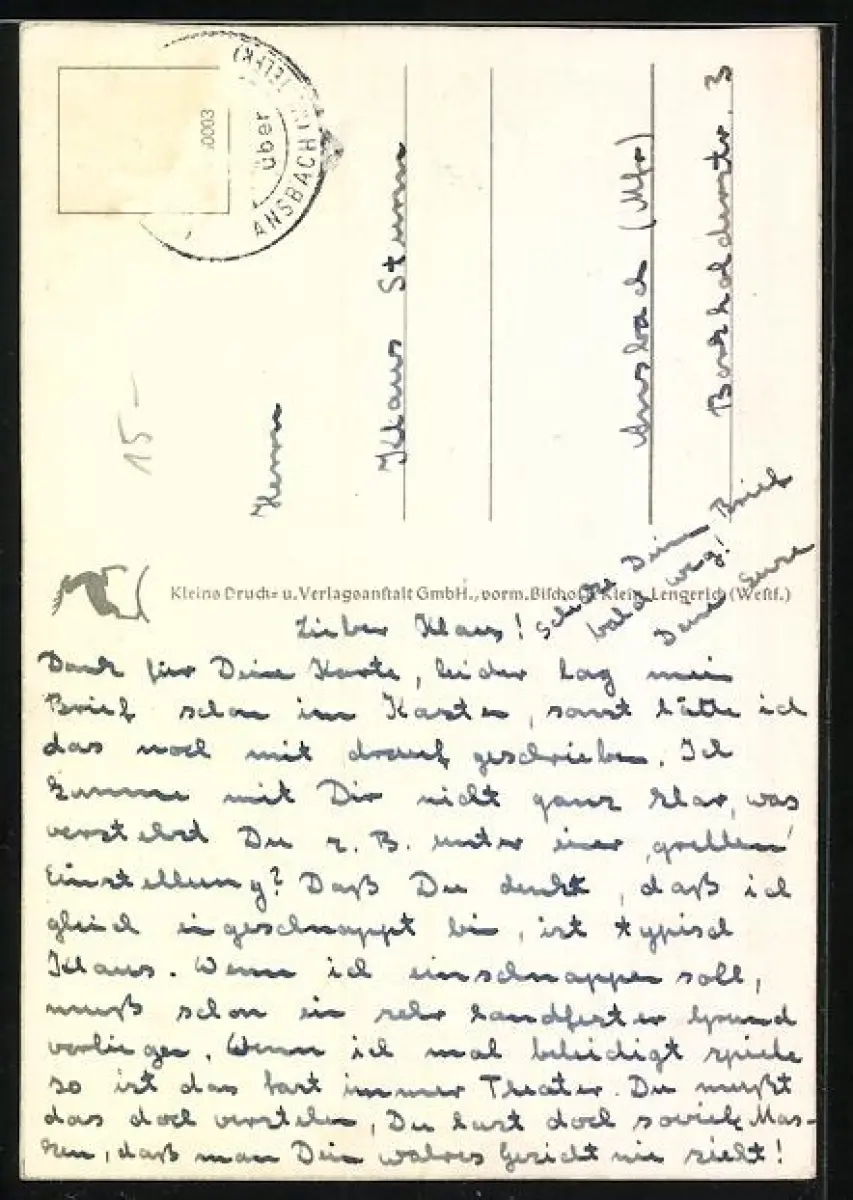 alte Ansichtskarte, gelaufen, Briefmarke entfernt, rückseitig Oberflächenschaden, guter Zustand