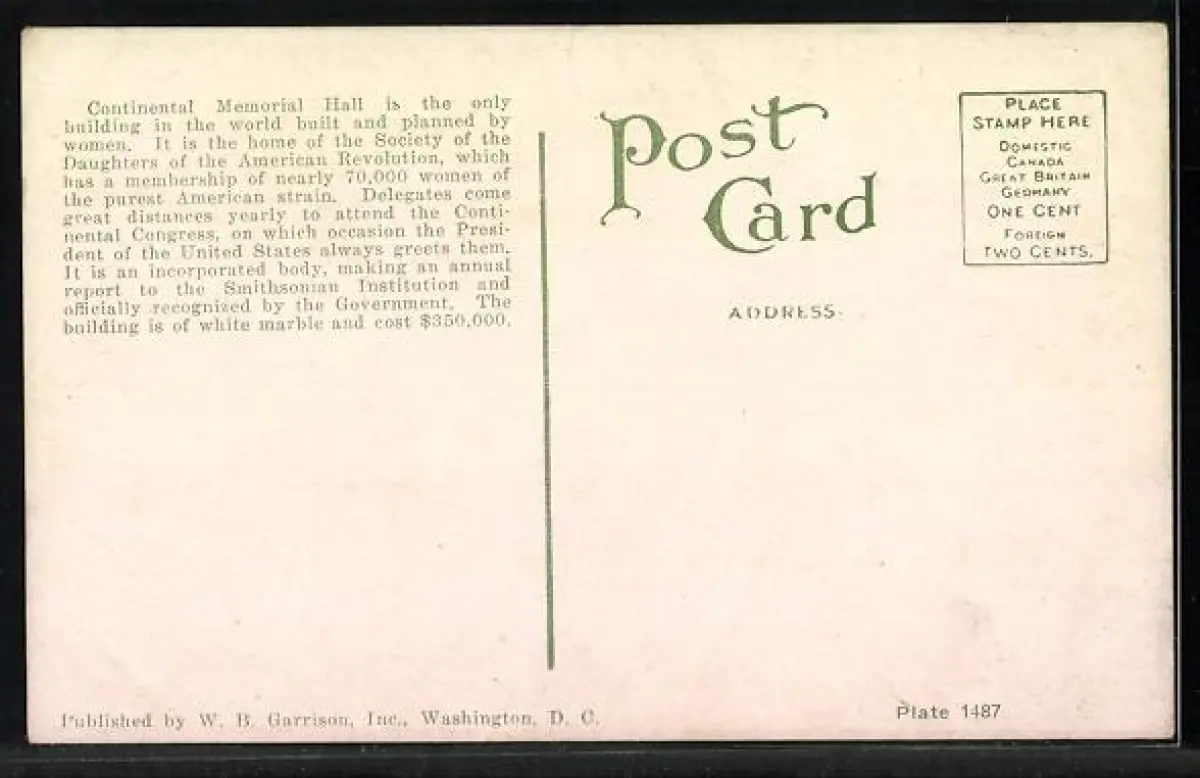 AK Washington D.C., Continental Memorial Hall, Home of the Society of the Daughters of the American Revolution