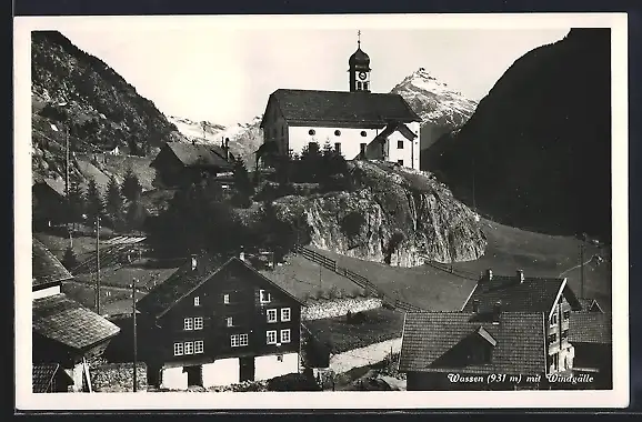 AK Wassen, Ortsansicht mit Kirche und Windgelle