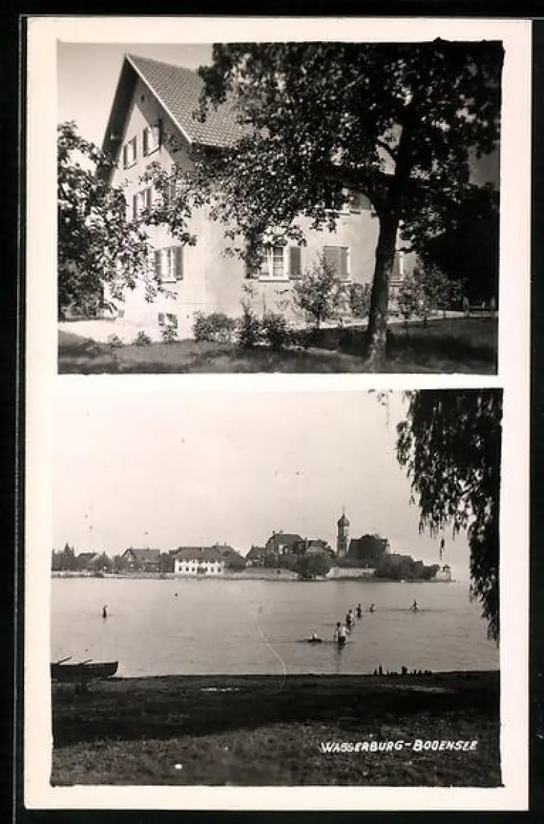 AK Wasserburg /Bodensee, Ortsansicht, Seeufer, Kirche