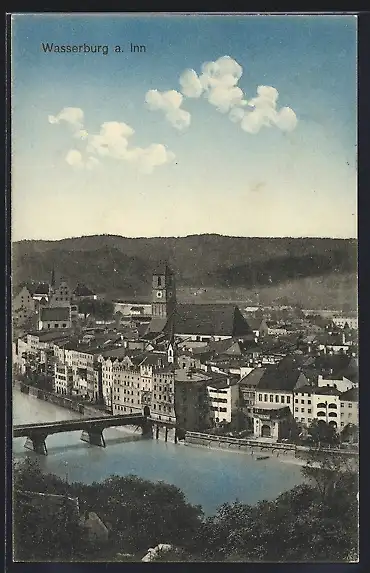 AK Wasserburg / Inn, Teilansicht mit Inn