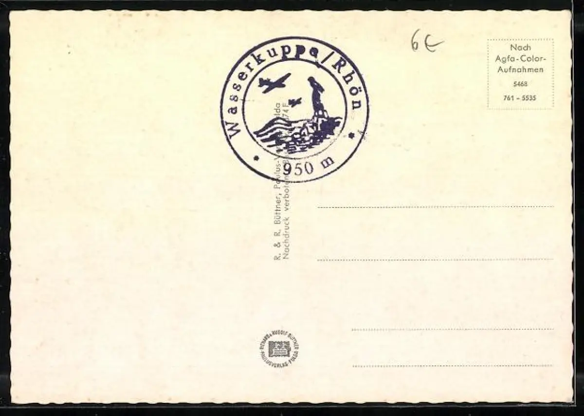 Personenbezogene Daten auf der Rückseite der Karte wurden durch blauen Textmarker unkenntlich gemacht. Die blauen Stellen sind auf die Vorderseite durchgeweicht und wirken sich negativ auf das Postkartenfoto aus