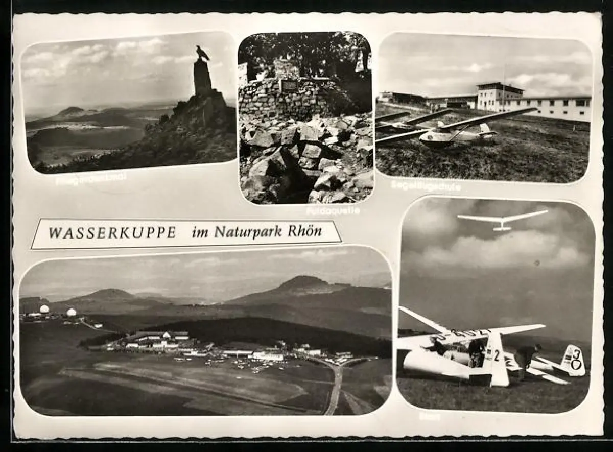 AK Wasserkuppe, Segelflugschule, Segelflieger beim Start, Fliegerdenkmal
