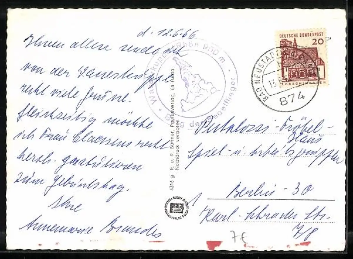 gelaufen 1966, Stempelspur, Bugspuren rechts unten und rechts oben, sonst guter Zustand