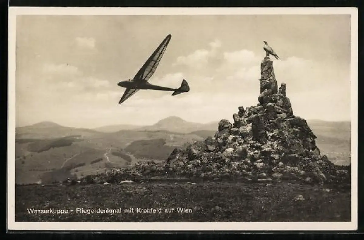 AK Wasserkuppe, Segelflugzeug über dem Fliegerdenkmal
