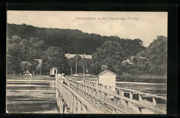 AK Wassersleben an der Flensburger Föhrde, auf dem Seesteg in den Ort blickend