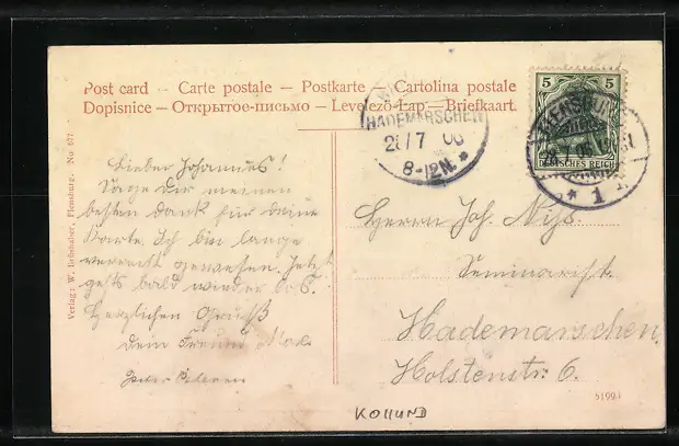 alte Ansichtskarte, gelaufen 1906, guter Zustand