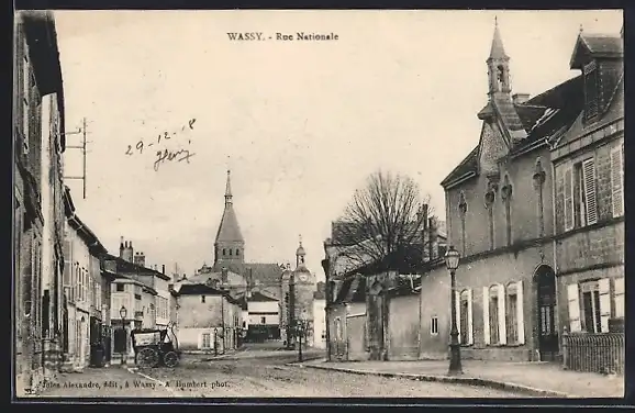 AK Wassy, Rue Nationale avec vue sur l`église et bâtiments historiques