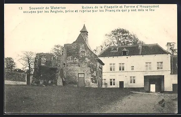AK Waterloo, Ruines de la Chapelle et Ferme d`Hougoumot