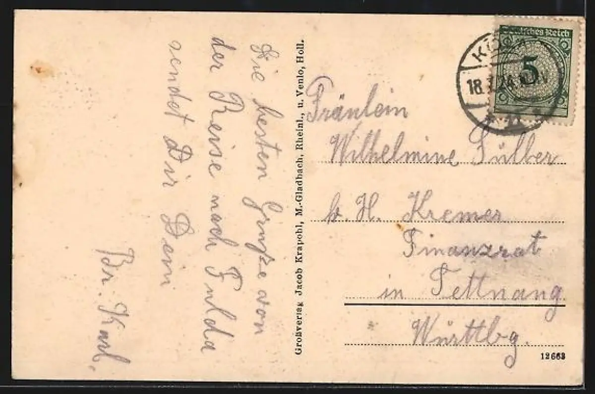 alte Ansichtskarte, gelaufen 1924, Eckknicke li, minimaler Einriss li. mittig, guter Zustand