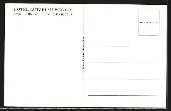 AK Weggis, Hotel Lützelau, Propr. B. Blank