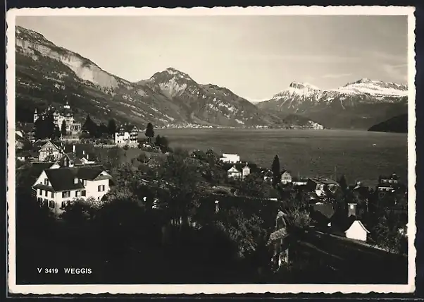 AK Weggis, Ortsansicht mit Alpenpanorama