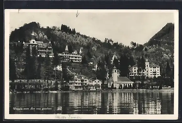 AK Weggis, Ortsansicht vom See aus