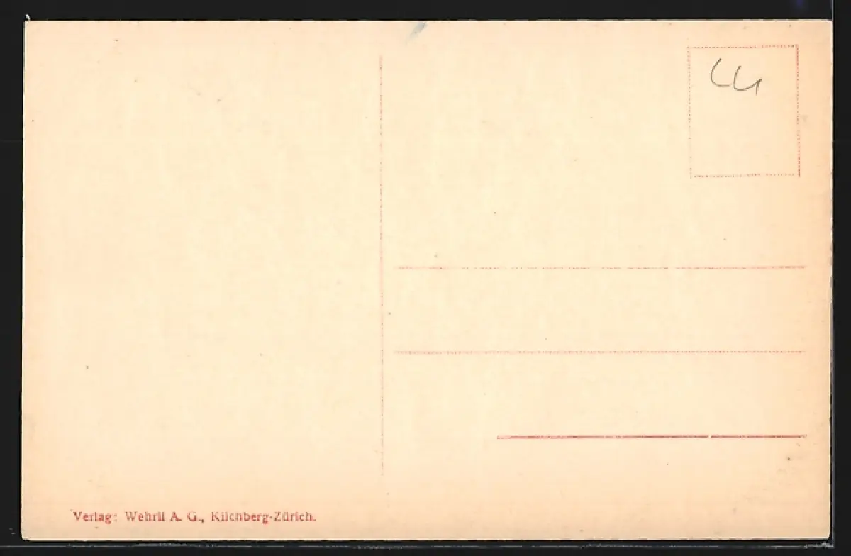 Personenbezogene Daten auf der Rückseite der Karte wurden durch blauen Textmarker unkenntlich gemacht. Die blauen Stellen sind auf die Vorderseite durchgeweicht und wirken sich negativ auf das Postkartenfoto aus