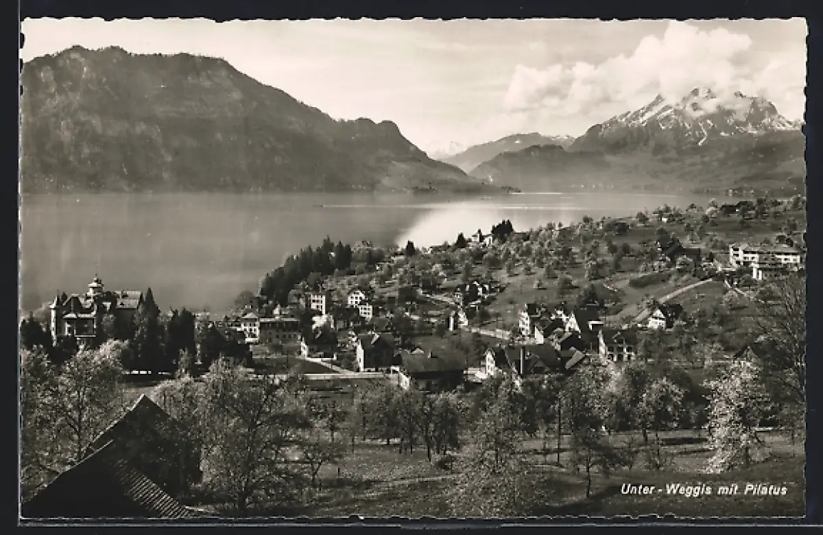 AK Weggis, Unter-Weggis, Gesamtansicht mit Wasserblick u. Oilatus