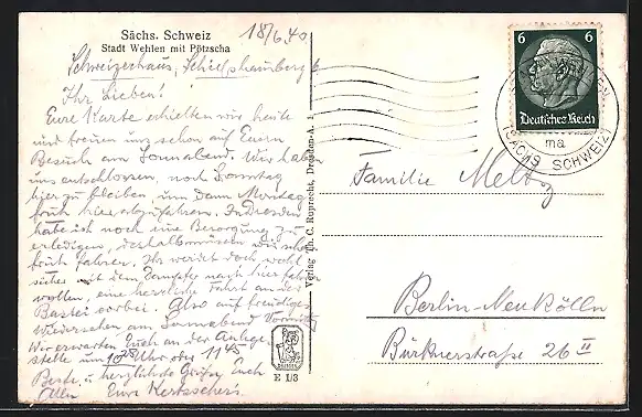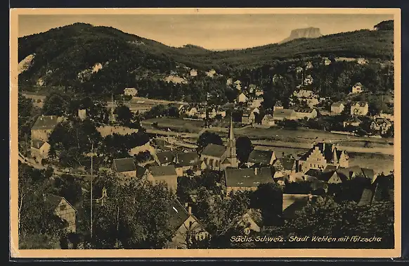 AK Wehlen / Sächs. Schweiz, Blick zum Ort mit Pötzscha