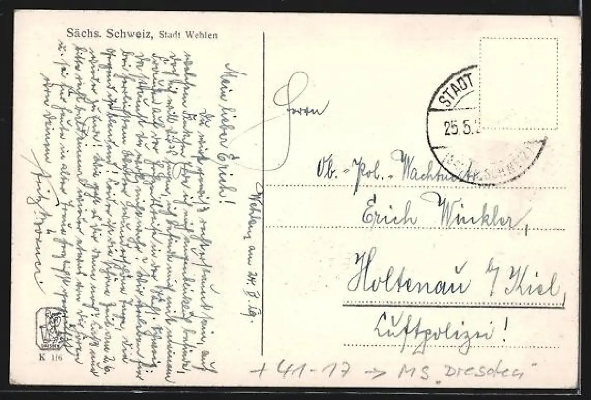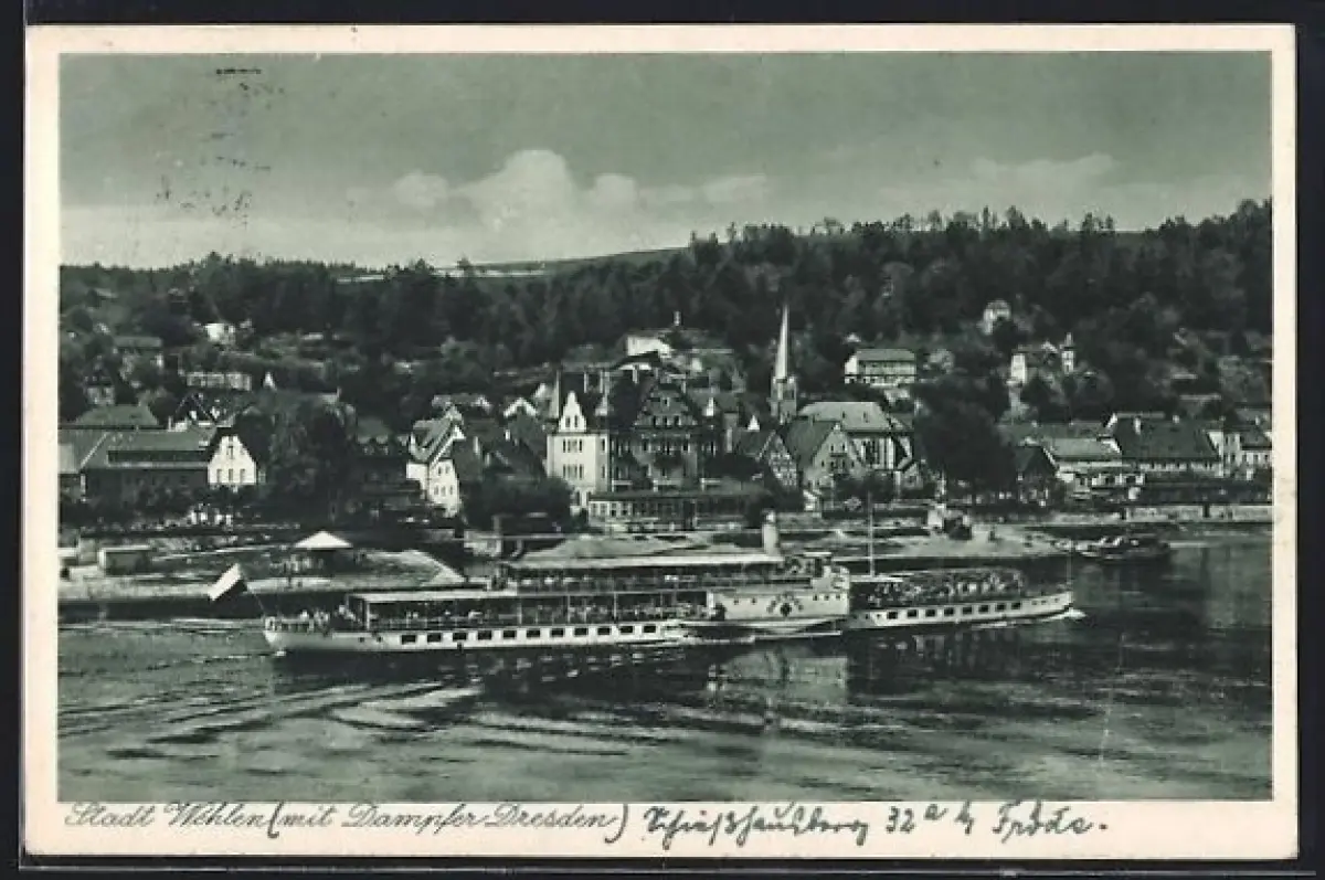 AK Wehlen / Sächs. Schweiz, Teilansicht mit Dampfer MS Dresden auf der Elbe
