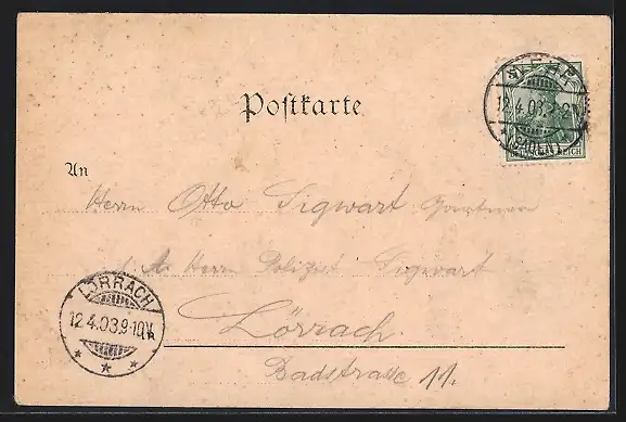 alte Ansichtskarte, gelaufen 1903, guter Zustand