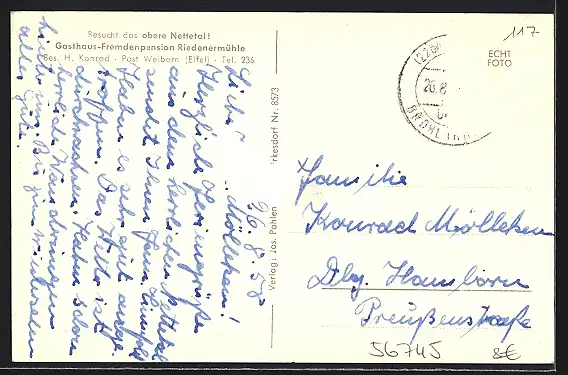 AK Weibern /Eiffel, Gasthaus-Pension Riedenermühle H. Konrad aus der Vogelschau